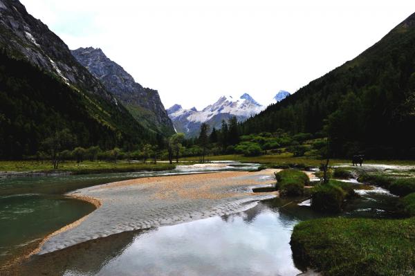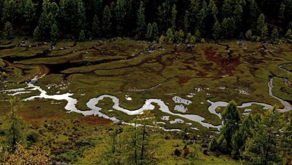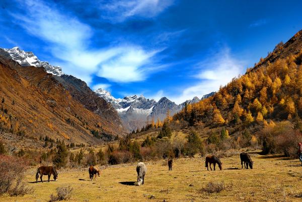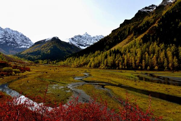 青藏高原和四川盆地经过亿万年的交汇碰撞,形成了雪山与峡谷毗连,海子与草甸交错,林海与峭壁呼应的大美。
