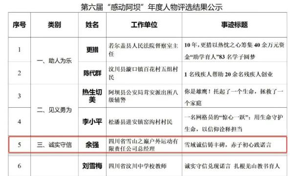 阿坝州第六届“感动阿坝”年度人物评选 小金一人上榜